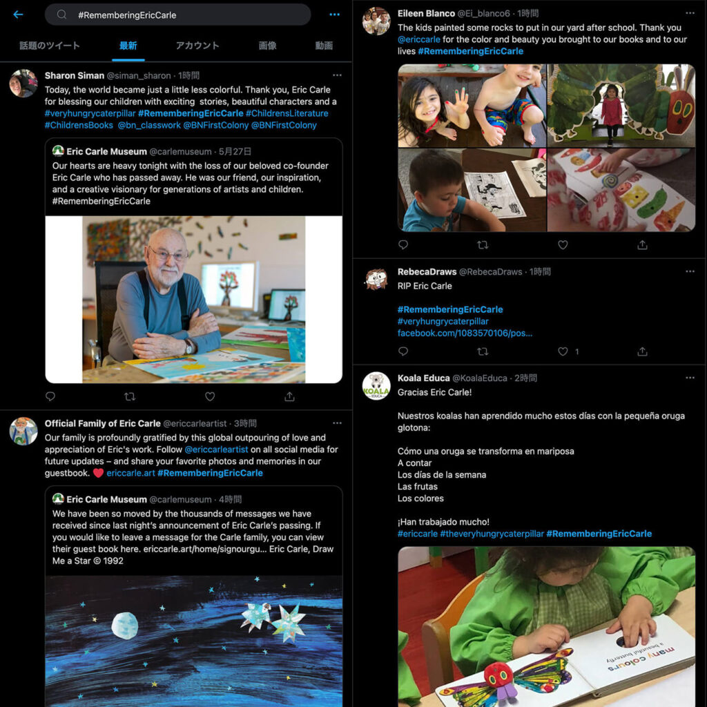 Twitterで#RememberingEricCarleのハッシュタグで検索してスクロールしていけば彼が世界に与えた影響が一目瞭然です。